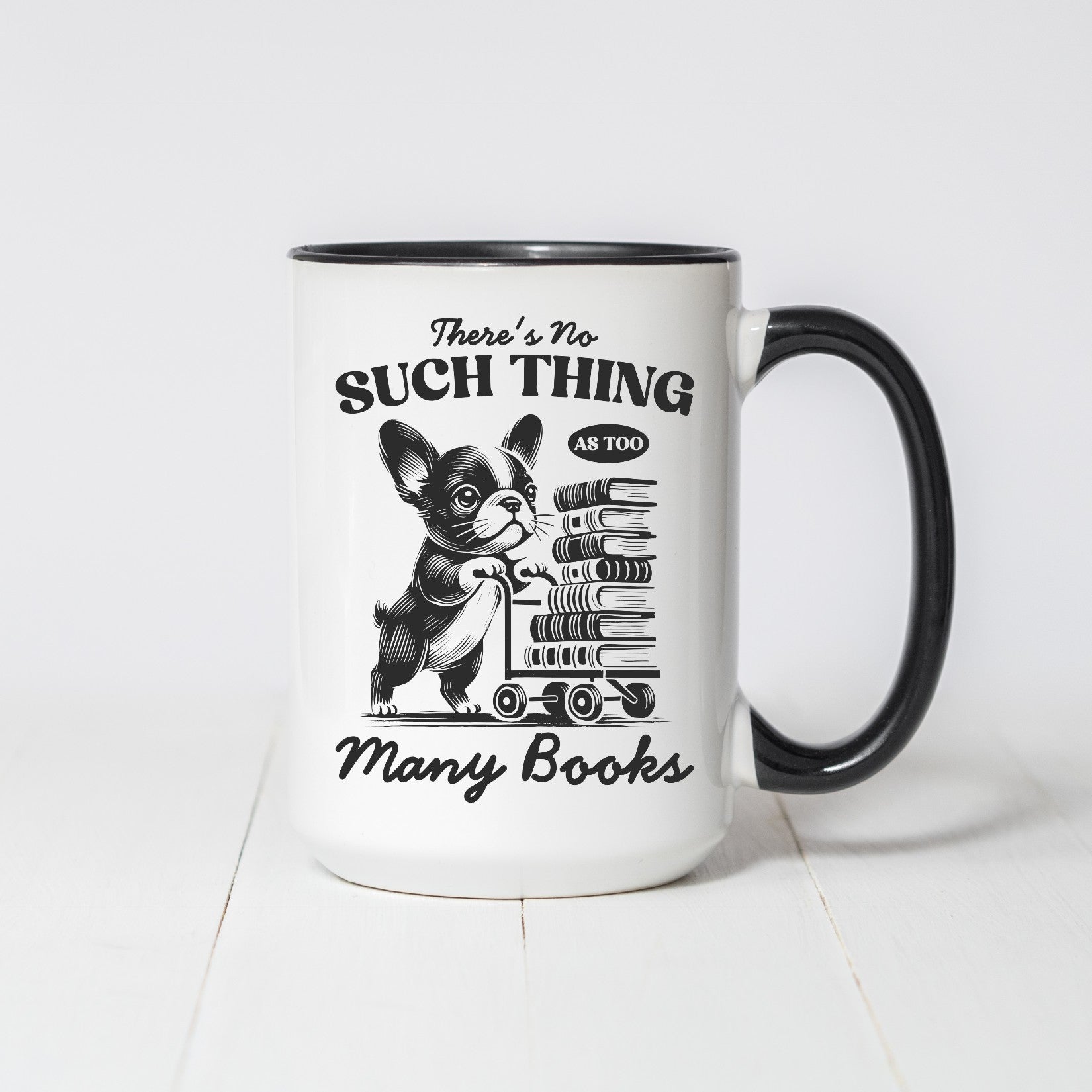 Calling all book lovers! This charming coffee mug is perfect for those who believe there’s no such thing as too many books. Featuring an adorable French bulldog pushing a cart stacked with books, this design is a must-have for any avid reader. Whether you’re sipping coffee while diving into your next novel or enjoying tea during a quiet reading session, this mug has you covered.